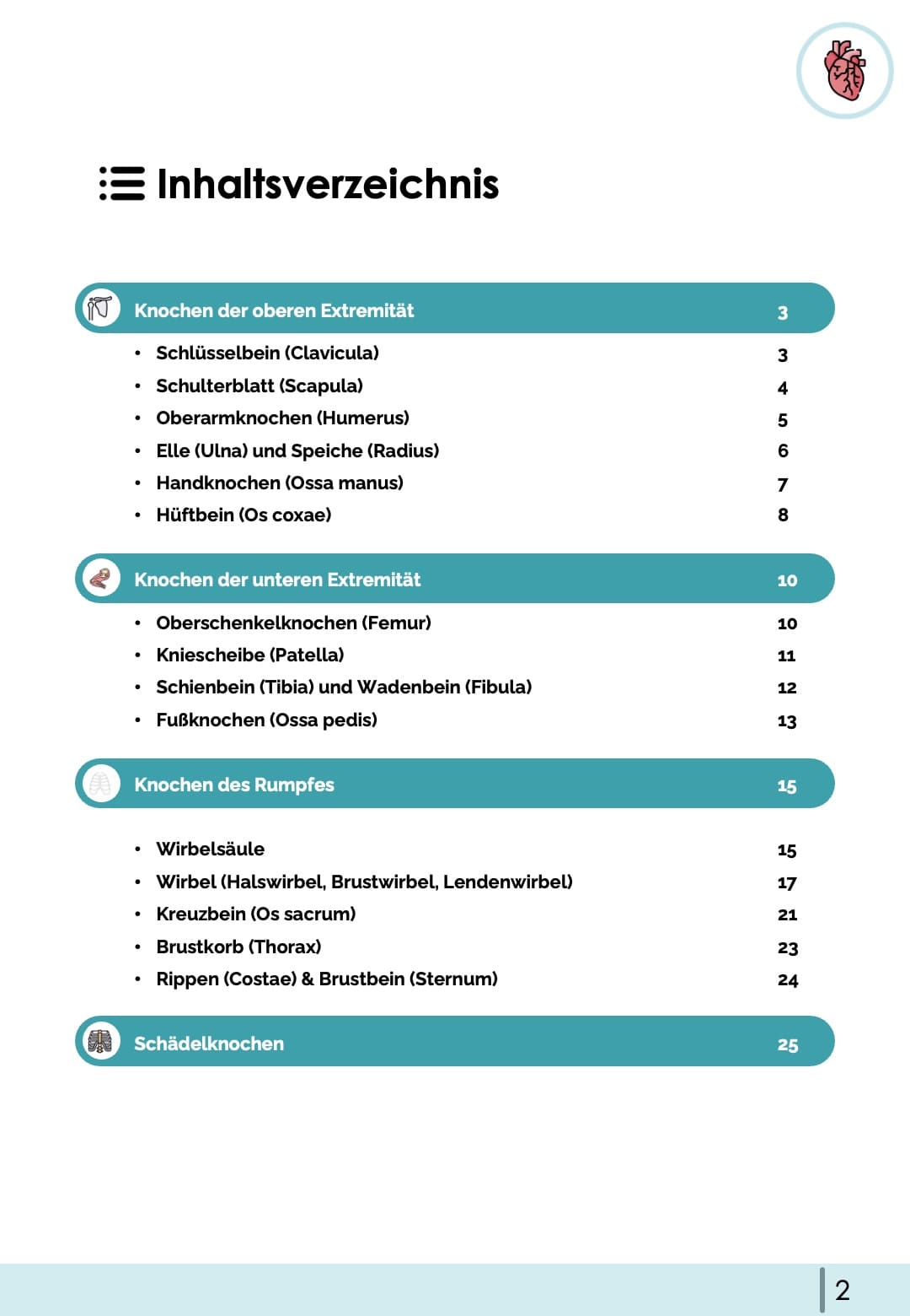 - 📖 Übersichtlich und strukturiert: Lernkarten mit allen Knochen auf wenigen Seiten komprimiert, schnelle Wiederholung